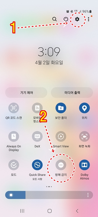 1. 휴대폰 바탕화면 → 설정 → 방해금지 해제