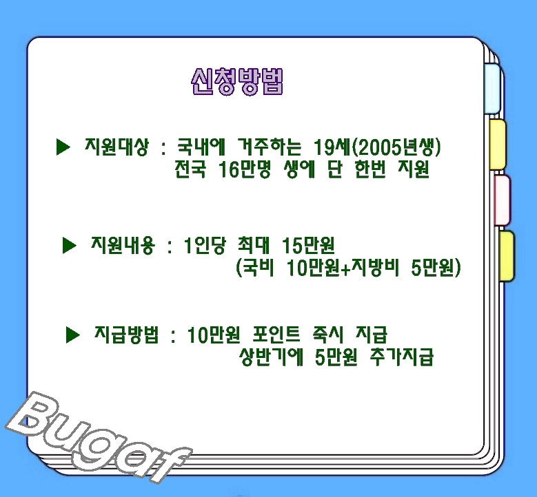 국비 10만원, 지방비 5만원 지급 15만원 신청방법으로는