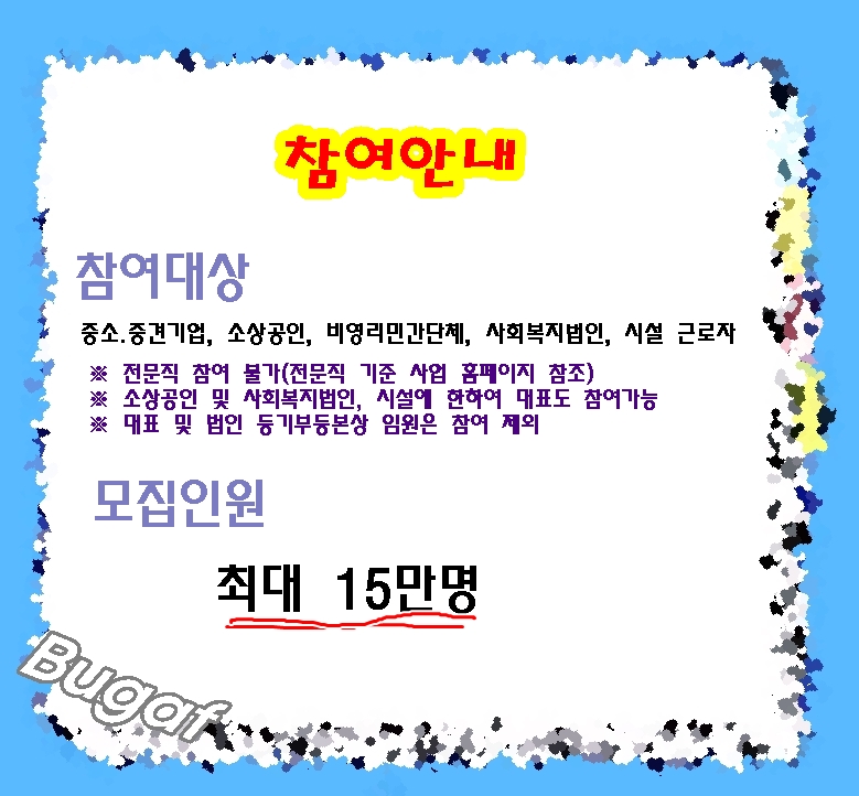 - 소상공인 및 사회복지법인, 시설에 한하여 대표도 참여가능
