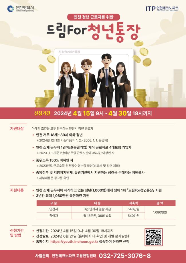 - 접수창구 : 인천유스 톡톡(인천청년포털) 홈페이지 (https://youth.incheon.go.kr)