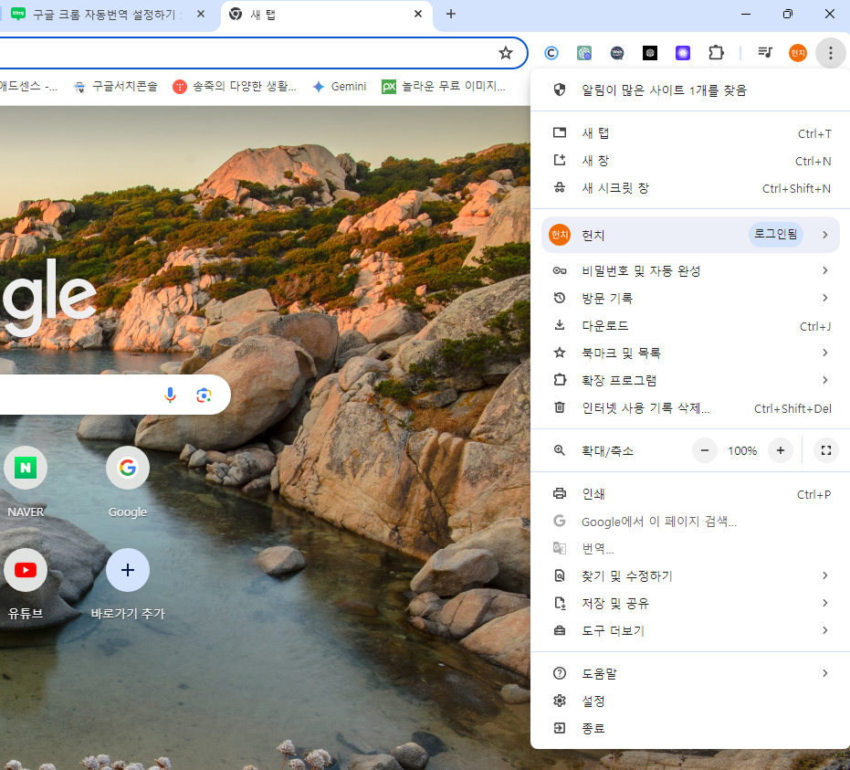 다음에 사이트 접속 시 자동번역이 안될 경우 아래를 참고해 주세요.