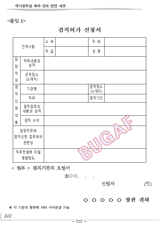 공무원겸직허가 신청서