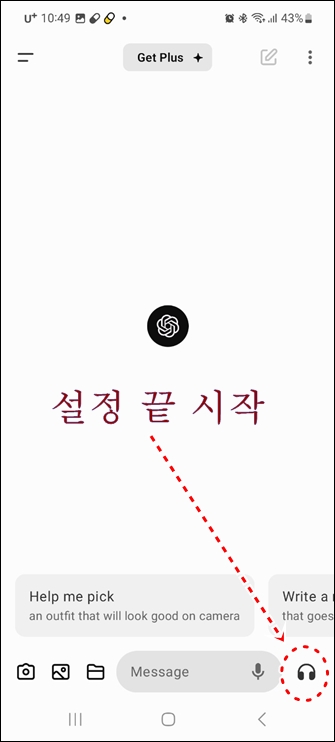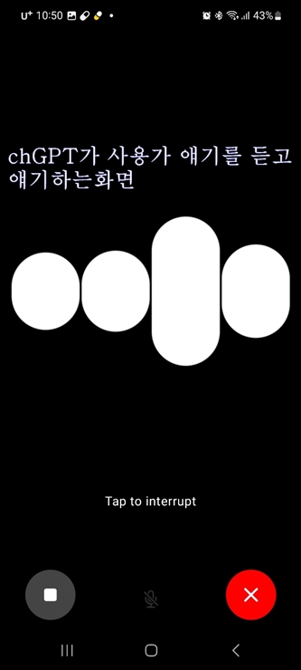 ※ 말하는 도중에 ChatGPT가 얘기를 한다면 화면의 버튼을 누르고 얘기해도 됩니다.