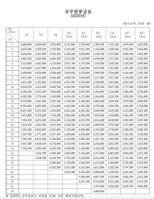 2025년 공무원 급여 인상폭 3%