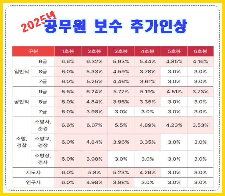 2025년 공무원 봉급인상내용 정리
