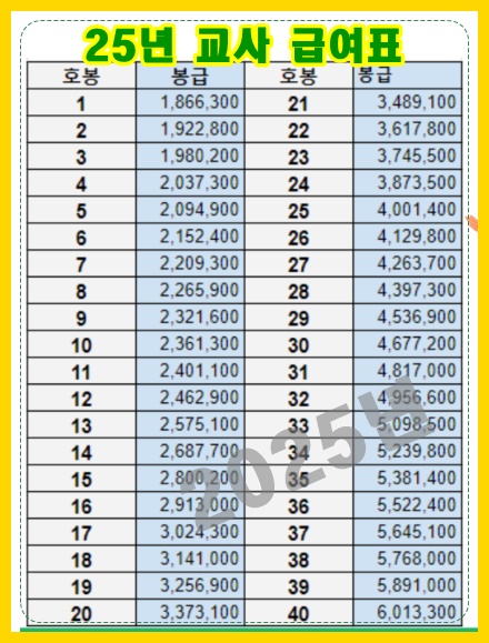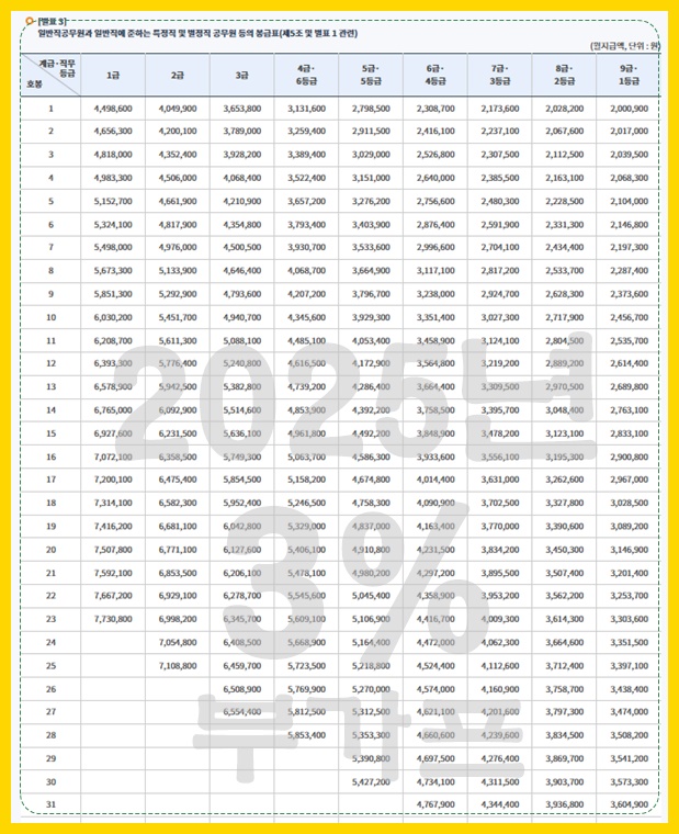2025년 공무원 급여표 / 2025년 공무원 급여 인상