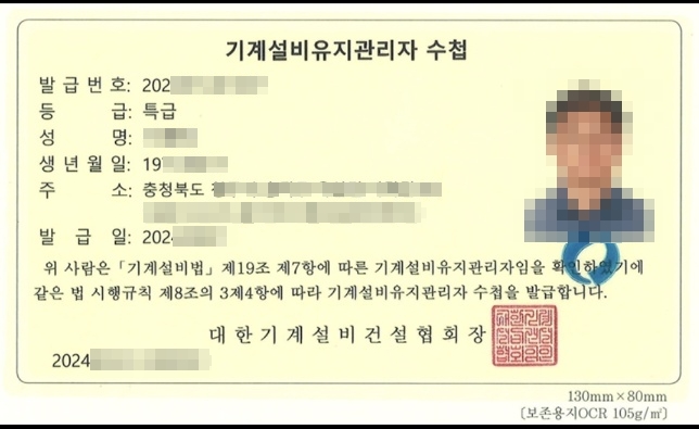 이렇듯 7개의 자격을 취득 후 기계설비유지관리자 자격증을 대한기계설비건설협회 (문의 1661-3344)에서 자격증을 신청하여 자격수첩(특급, 고급, 중급, 초급) 자격수첩을 발급받을 수 있습니다.