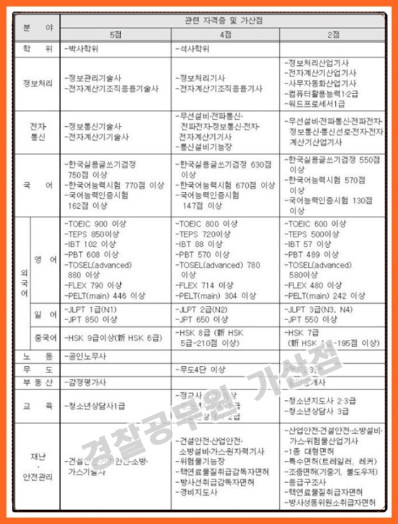 경찰공무원의 자격증 가산점의 종류는 분야별로 자격증과 가산점을 달리하고 있습니다.