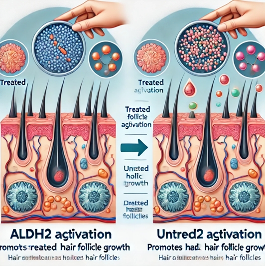최근 연구에 따르면, ALDH2 효소의 활성화를 통해 모낭을 성장기로 회복시키는 새로운 탈모 치료 기전이 제시되었습니다. 이러한 연구는 향후 탈모 치료에 새로운 방향을 제시할 것으로 기대됩니다.