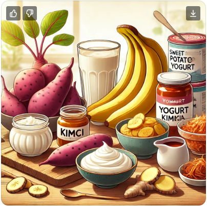 요구르트, 김치, 청국장: 유산균이 많아 장 건강을 개선