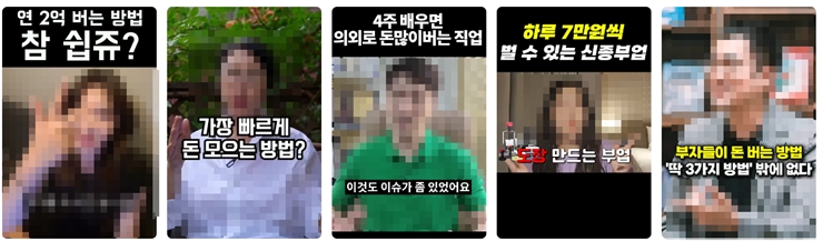 일반 사회생활을 통한 노동의 강도 보다는 클릭 몇번으로, 하루의 몇시간 투자로, 알고리즘에 뜨게되면 손쉽게 돈을 벌 수 있다는 메세지와 돈 버는 방법이 따라만 하면 된다는 말에 귀를 기울이게 됩니다