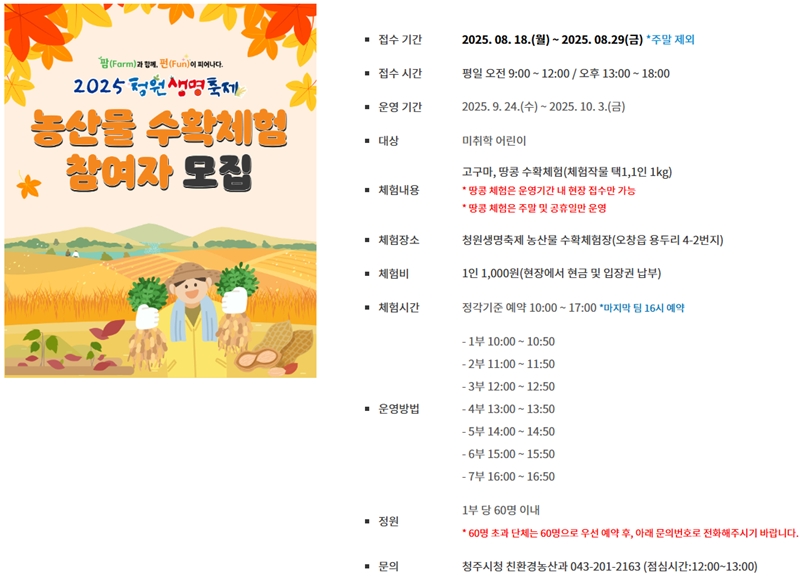 - 행사장소 : 오창읍 미래지농촌테마공원 (충북 청주시 청원구 오창읍 미래지로 99)