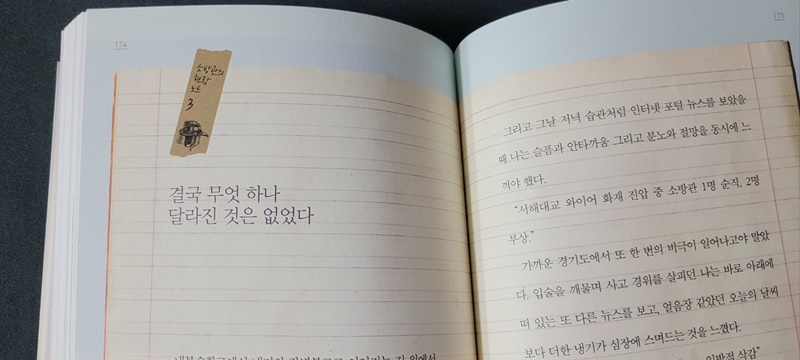 장애라는 벽만을 느끼는 현장 소방관들에게 희생과 노고에만 바랄것이 아니라 현실적인 처우개선이 필요해 보이는 2024년 한켠에 꼿아 있던 한 청년소방관이 기록한 순간들을 보면서 가슴에 울분과 희망을 가져 봅니다.