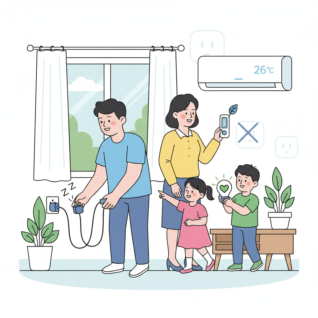 - 적정 실내 온도(여름 26~28도, 겨울 18~20도)를 유지하고 내복 착용 등으로 체감 온도를 조절합니다.