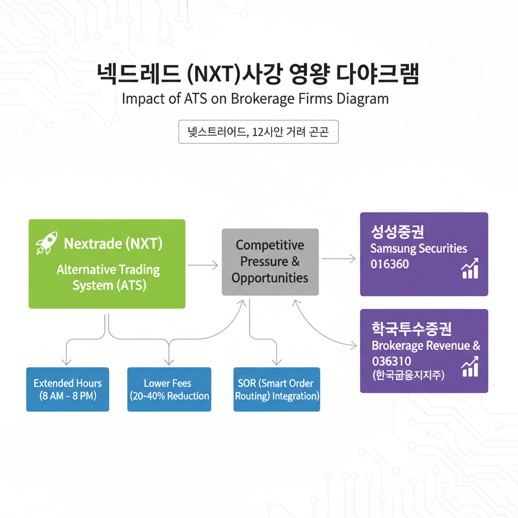 넥스트레이드(NXT)는 증권 시장의 인프라로서 직접적인 투자 대상은 아니지만, 이에 참여하거나 영향을 받는 주요 증권사들의 실적과 시장 경쟁 구도에 변화를 가져올 수 있습니다.