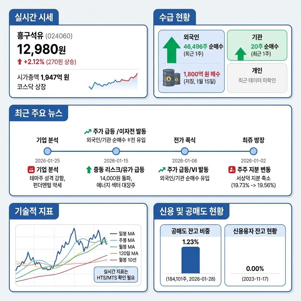 흥구석유는 에너지 관련 테마주로, 국제 유가 변동성 및 지정학적 리스크에 민감하게 반응하는 특징을 보입니다.