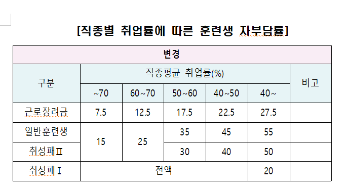 우수훈련 과정(취업률 70%이상)자부담이 면제 되었고