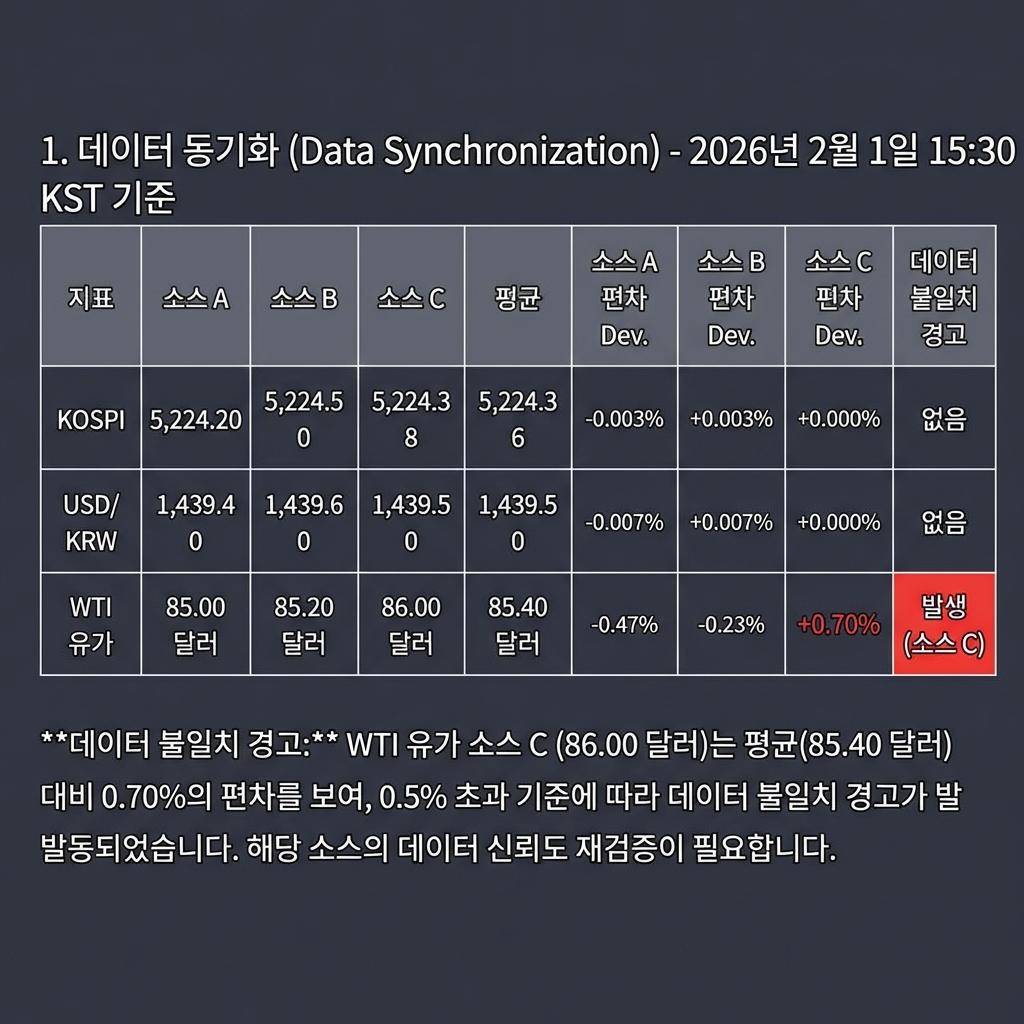 WTI 유가 소스 C(86.00 달러)가 평균 대비 0.70% 편차를 보였습니다. 0.5% 임계값을 초과함에 따라 해당 데이터 포인트의 신뢰도 재검증 프로세스가 진행 중입니다.