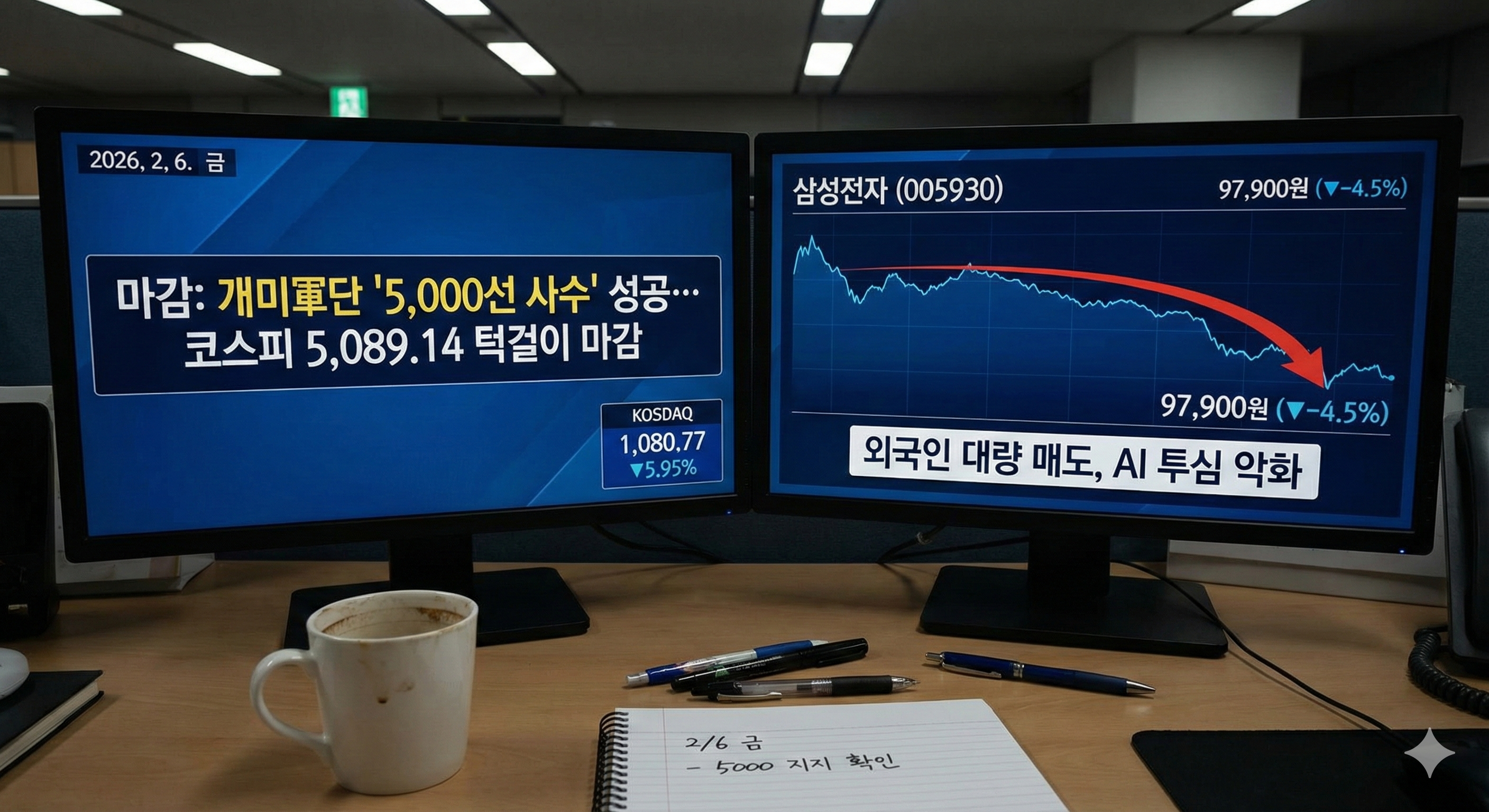 - 15:30 (마감): 동시호가에서 소폭 반등하며 5,089.14로 마감. 심리적 지지선인 5,000포인트 위에서 장을 마치며 최악은 면함.