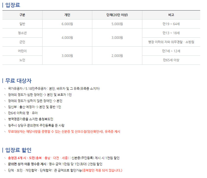 - 단체관람객(16인승 이상 승합차 또는 관광버스 이용자 : 청남대 매표소에서 입장권 구입)