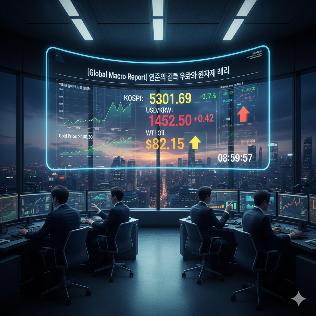 "시장의 소음(News)에 흔들리지 말고 데이터(Data)를 보십시오. 유가와 금값이 동시에 오르는 것은 '불확실성'의 증거입니다. 현금 비중 20%를 유지하며 대응할 것을 권고합니다."