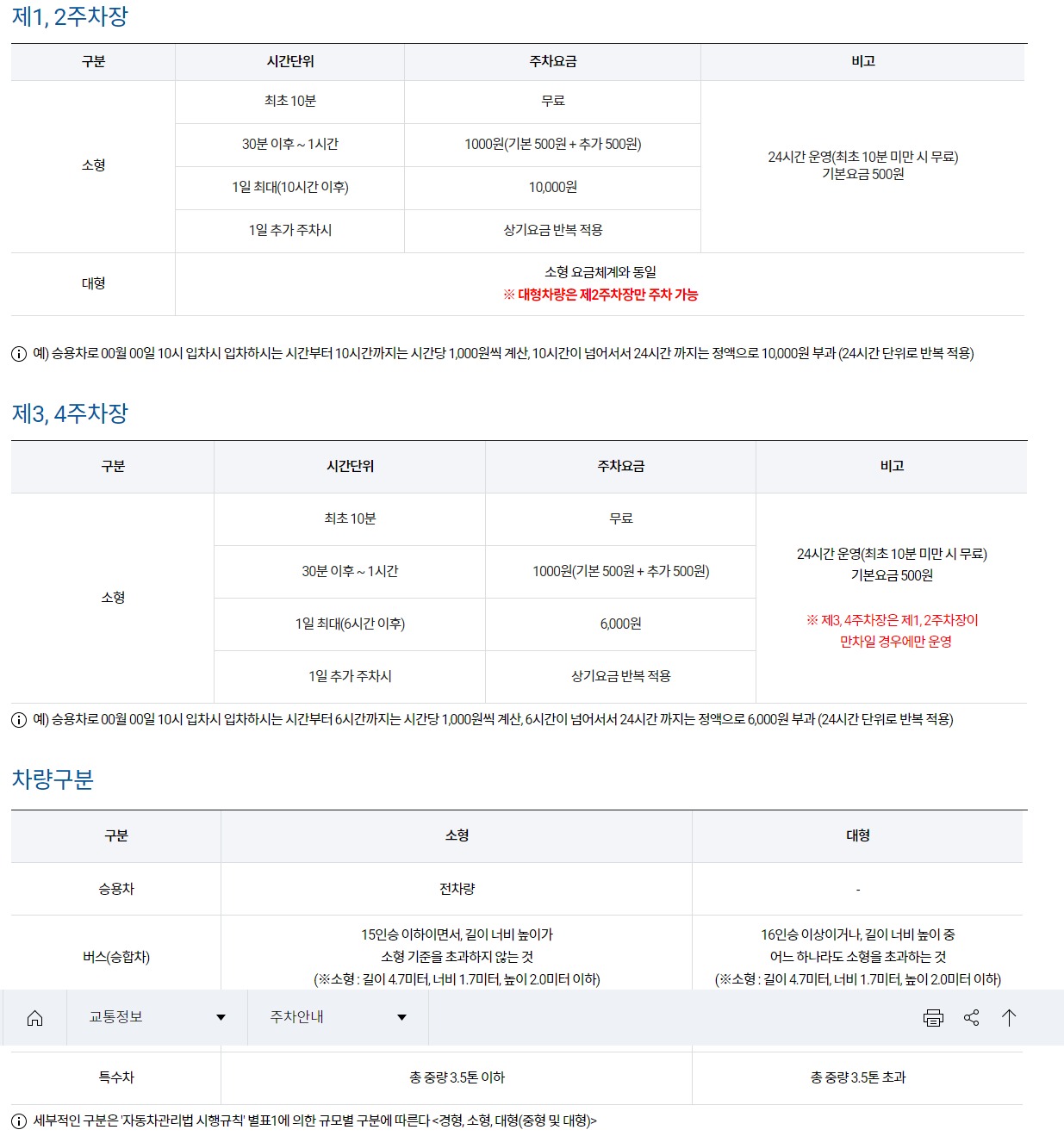 주차빌딩 (1,090면), 제1주차장(1,113면), 제2주차장(1,703면), 제3주차장(499면), 제4주차장(463면)