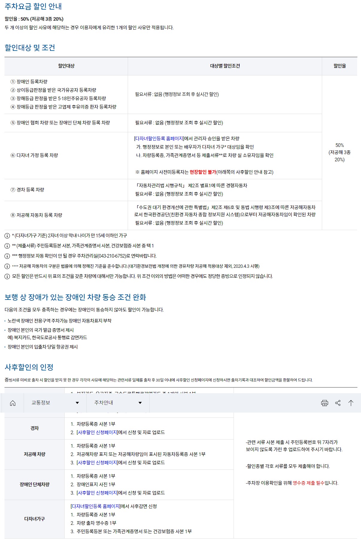 ㆍ경차, 국가유공자(상이등급, 장애등급), 장애인, 다자녀 50%할인